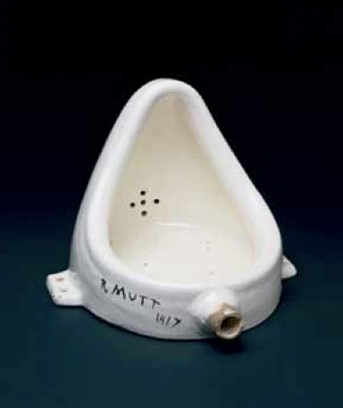 现在,一条分界线出现了,线的两边是对抗的双方。格雷茨和梅金杰认为《裸女》配不上立体主义绘画的称号。而杜尚似乎认为“立体主义绘画”不一定算得上是什么尊称,但他还是深深受到了伤害。当世界大战瞬息万变的局势让他跟格雷茨再度不期而遇时,复仇的机会到了。两人都为躲避战火离开欧洲,逃到纽约。当纽约一帮艺术家准备建立新的组织对抗保守的国家设计学院时,两人都成了他们的顾问。其中一人(或两人都)建议抗议群体的核心——垃圾箱画派的艺术家以法国独立艺术家协会为新组织的原型:无评审,无奖项。剩下的都已是历史。这也是非艺术诞生的最后一个阶段,很明显亦是一般意义上的艺术系统形成的最后一个阶段。1917年4月,纽约独立艺术家协会第一次展览开幕前几天,组委会收到一个名叫理查德・穆特的人提交的作品。作品题为《泉》,实际上却是一个倒过来放置的小便器,上面还有像作品落款一样的艺术家签名和日期。杜尚(即穆特)选择以这样的物品参展,就是为了确保它会被组委会拒之门外。他设下了一个圈套。