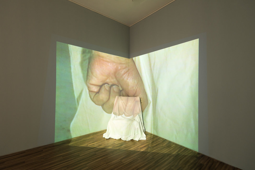 香格纳的展览“我没有我”首先呈现的是一系列大尺幅的抽象绘画。这些画面内容几乎全部由“涂抹”的动作完成,笔触所生成的不同质地成为了艺术家的工作对象。出于对公共交流语言的质疑,申凡在其中一组绘画中挪用了小朋友画的透视错误、结构失衡的立方体,并幽默地将这组“丧失沟通基准”的绘画命名为“与常识相关的立方体”(2014)。而在另一幅具有代表性的《无题-C-003-2》(2017)中,艺术家用油画刮刀在厚敷的半风干油画颜料上不厌其烦地刮刻,使画面呈现出塑胶丝圈地毯般厚密反光的质感,在看似充满不确定性的流动路径交错中,一段结绳密语般的表达正在眼前编织成形。