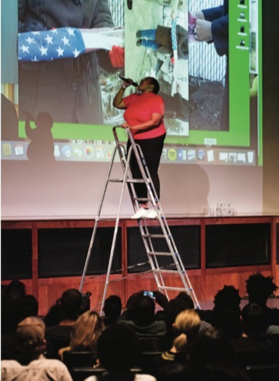 “我正经历着低潮”,艺术家桑德拉·派瑞(Sondra Perry)缓慢而庄重地说道,由此开启了今年六月在伦敦蛇形画廊夏日展馆关于她2015年的录像作品《一个多屏工作站的家谱:1号》(Lineage for a Multiple-Monitor Workstation: Number One, 2015)的现场表演。派瑞背诵着依冯·瑞娜(Yvonne Rainer)为1970年纽约现代艺术博物馆(MoMA)的“信息”(Information)展写下的那段著名声明。“最近,各种现实趋于一致地表明”,派瑞用颤抖的声音继续说道,“形式化的编舞动作似乎是不足为道的。”瑞娜在46年前写下的这段宣言,颇有预见性地指出了当下的编舞、行为艺术家、(志愿的或不知情的)参与者和策展人所面临的特殊挑战:当最为深刻的表演——无论是弥漫着暴力气息的政治集会,还是“黑人的命同样是命”(Black Lives Matter) 这样的抗议游行活动——正在街头发生时,艺术还能为我们提供什么?当然,表演还是能够以其固有的时间性和立足当下的视角,通过找寻动作、身体轮廓和声音的抑扬顿挫,贴切地描绘出此刻被暴力和罪恶行径所浸染的世界。