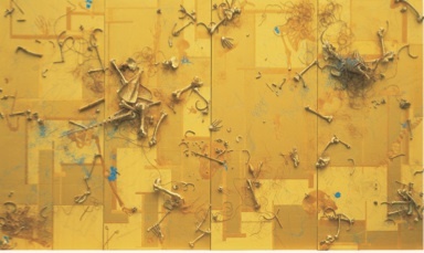 他将自己颠覆性的倾向付诸于对绘画有效性和观众期待性的挑战上,成功地将观众带入到现实存在中。整个展览场景就如居伊·德波(Guy Debord)所说的那种构建的“情势”,在此处,在令人惊叹的雕塑的纠结中,我们评判性的自我意识止于脱口而出的“啊啊”声,交叉斜穿过地面长长的对角线。