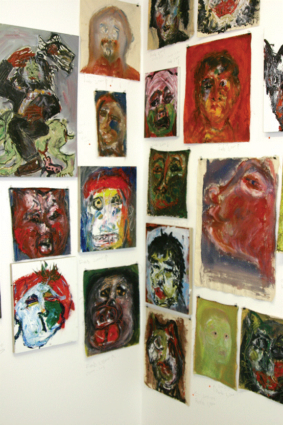 我第一次见到唐宋是透过汽车的挡风玻璃。他蹲在房顶上,望着我们沿竹林夹道的山路缓缓驶入他的巢穴。他刚剃的棕色头皮在太阳下闪闪发光,尖尖的耳朵在身后天空的映衬下格外显眼,看上去如同堕落天使路西法,正从高处俯瞰他从长途旅行归来的臣民们。第一印象往往留存很长时间,而唐给我的第一印象一直持续到现在。当时的场景仿佛是直接从007电影里截取出来的:疯狂的坏人在地处偏僻的秘密基地房顶上来回踱步,阴谋策划着毁灭世界。进入室内,除了一个小房间放着折叠床和电热炉,收拾得很整洁以外,其他所有保持毛坯状态的水泥房里都堆满了唐宋大胆的装置和绘画作品,它们就这样躺在那儿,接受风吹日晒的考验——完全疯狂的产物。