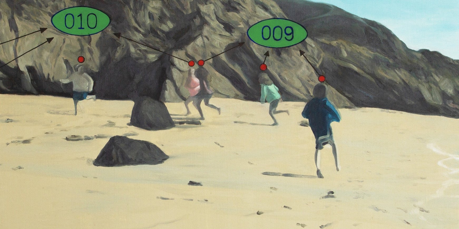 当曾宏以此命名他时隔六年的首次个展时,这里面包含的情感无疑是复杂的。“新”,指向的可能是古怪与陌生,而非关于“更好”的允诺。在市场经济转型期的工矿厂区长大的曾宏,无疑对此有着深切的体认;一直以来他通过艺术去呈现和讨论的,就是劳动与劳动者的处境。他早期的作品大多描绘集体宿舍或洗衣房等建筑的表面,以无数单调重复的细节通过转喻的方式暗示发生在其中的流水线劳动以及被规训的身体。数年后,这些细节被归纳为一种坚实的,如纪念碑的块面。这多少受到苏俄前卫乃至至上主义理念的影响——一种真正进步的艺术需要在现实的总体性之外建立其语言的自主与绝对。但他很快意识到,纯粹语言的追求在脱开现实抓手时,往往易滑向仅凭趣味维系的形式美学。创作于2017年的《人民》体现了一种转向的尝试,那是他第一次将一个具有鲜明政治指向的词语带入画面,同时他也开始用影像记录真实的劳动场景并用素描小稿描绘各种动作分解。此次展览中,劳动的形象第一次明确地在画布上现身;同时展出的另一幅《人民》(2020),作为这个展览中最早的作品,延续并保留了这一转向的痕迹。
