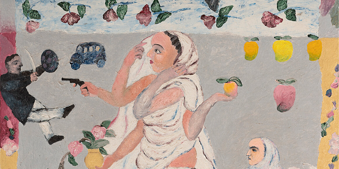 这幅名为《持枪的女神》(Devi Pistol Wali,1990)的画作是阿尔皮塔·辛格(Arpita Singh)在伦敦蛇形画廊举办的回顾展“回忆”(Remembering)中展出的165件作品之一。辛格于1937年出生于靠近加尔各答附近的孟加拉城市巴拉纳加尔(Baranagar),从事绘画创作已超过半个世纪,是印度当代最著名、最多产的艺术家之一。这是她首次在印度次大陆以外地区举办个展。