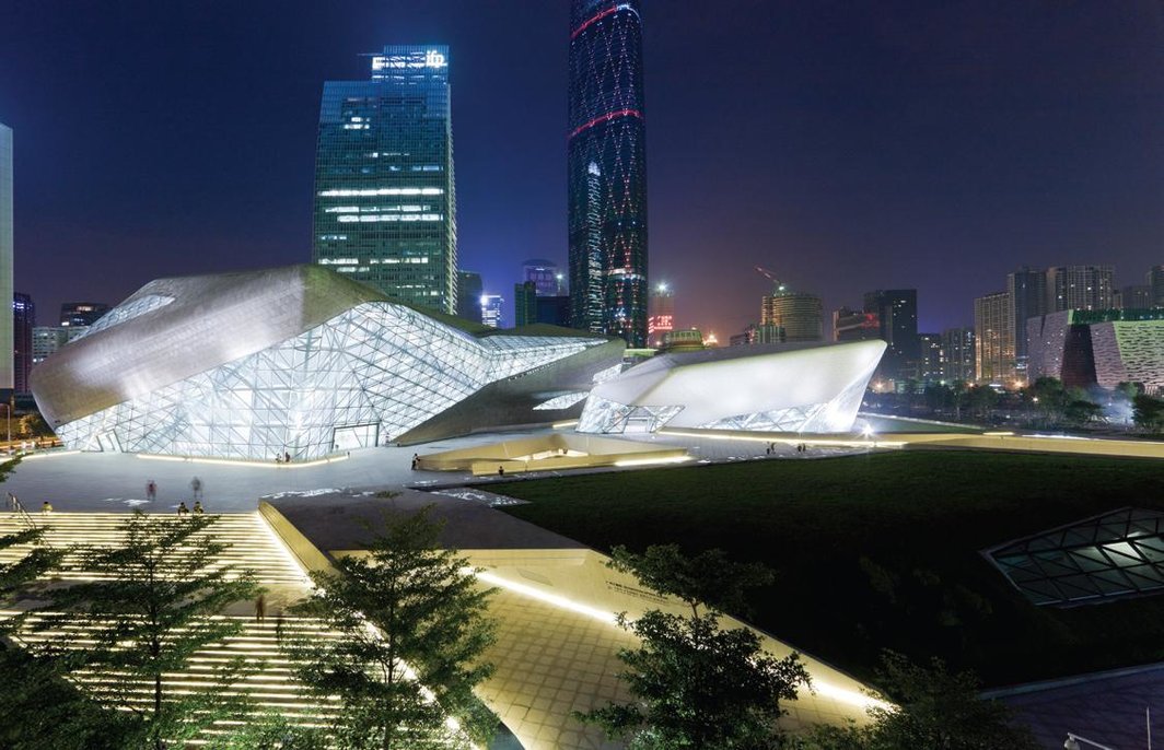 广州的建筑环境显然是十分复杂的,而这些设计在很大程度上没有对这种复杂性做出反应。相反,这座城市的建筑亮点所强调的是在今天的中国,什么成为了获得大型公共委托的重点:将建筑的表现力全部施展在一系列结构性隐喻上。Hadid的剧院就像两块被抛到河堤上的巨石,表面上似乎是在对毗邻的珠江致意。Yim的博物馆让人想起中国的漆盒。而图书馆建筑的内部空间都被剥离开,就仿佛……一本打开的书籍的书页。