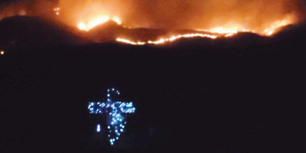 2021年,亚利桑那州各地发生了大约1773场山火。同年七月初,艺术家斯科特·考佛特(Scott Covert)和他的旅伴——电影人莱克斯·尼阿乔斯(Lex Niarchos)正驾车横穿亚利桑那州。他们要去苏必利尔(Superior)小镇附近的皮纳尔墓园(Pinal Cemetery),因为考佛特想拓印西进运动中最后一批马车强盗之一——“女匪王”珀尔·哈特(Pearl Hart)的墓碑。一天晚上,两人在路边看到一个简陋的十字架,上面缠绕着一些蓝色的LED灯绳。尼阿乔斯用摄像机拍下了这座小小的纪念碑。但在视频里,我们看到,十字架背后的群山已完全陷入火海:漫天的火焰在漆黑的夜空下熊熊燃烧。这个罕见而又转瞬即逝的镜头成为了尼阿乔斯拍摄的《斯科特·考佛特:从过去到现在》(Scott Covert: Up Until Now,约1990-2022年)的开场。这部安静的、充满沉思气质的微型纪录片只有二十二多分钟长,镜头跟随艺术家穿行于我们正在土崩瓦解的世界,寻访一处又一处墓园,只为拓写那些声誉卓著或臭名远扬的逝者们的墓碑。(离开哈特墓地后,两人又去了凤凰城,拓印巴里·戈德华特[Barry Goldwater]和沃尔特·温切尔[Walter Winchell]的墓碑。)该版影片是为考佛特的首场机构展览而作,展览由阿里艾拉·沃伦斯(Ariella Wolens)策划,在佛罗里达州劳德代尔堡市(Fort