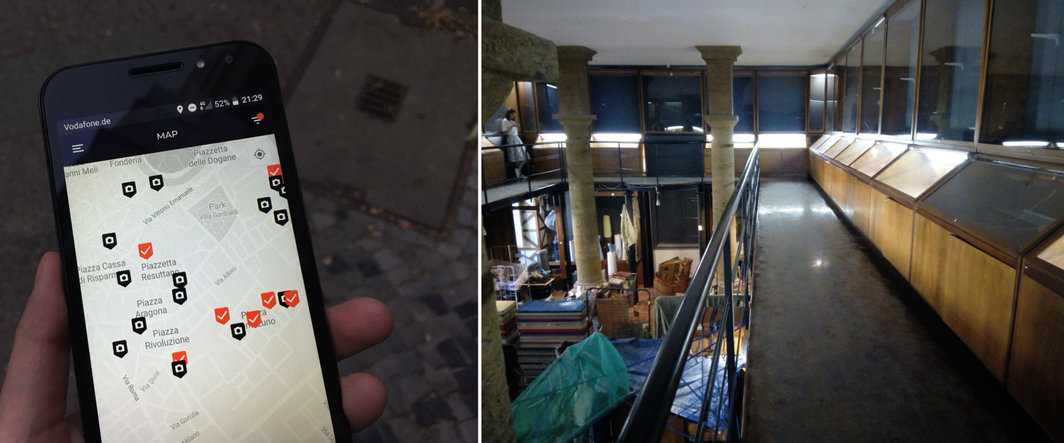 “Black,黑色的。”我的思绪又回到巴勒莫的街上。第12届Manifesta的许多场馆门口都站着样貌与众不同、黑色皮肤的人,他们或在维持展馆秩序,或操着流利的英语做信息导览,其中不少是刚刚落脚此地的难民。我想,他们站在大街上的不安全感,应该和我——一个矮小的、仿佛游客的中国女性——在那不勒斯一样重。2017年以来,在欧洲登陆的难民数量锐减,至今已经缩减至2015年高峰期的5% ,稀缺的工作机会也让已经落地的人出路变得不甚明了。而此时的我正在强烈的光线中盯着新买的手机,使用双年展专门定制的手机app在我的“安全地带”里扫荡展览,身份已经转换成看展览的艺术圈人士。