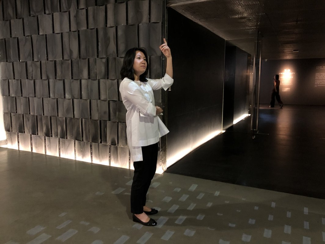 与此相较,知美术馆(由花样年华集团投资创建,毗邻集团酒店)的魏立刚个展“万物”在各展览中显得是唯一一个仍残留“在地经验”与“中国传统”的展览。作为回顾性大展,“万物”将魏氏30多年从汉字、书法出发的水墨、绘画、雕塑装置等创作共同展出。艺术家在导览过程中说道,他对中国汉字书法所衍生的本土抽象充满信心,历史将大浪淘沙。我被隈研吾的中国瓦片之光影闪得晕眩,一排大字突然压到眼前——东方美学的现代性与当代性——这是魏立刚用来诠释作品的话语,也是知美术馆的学术定位。