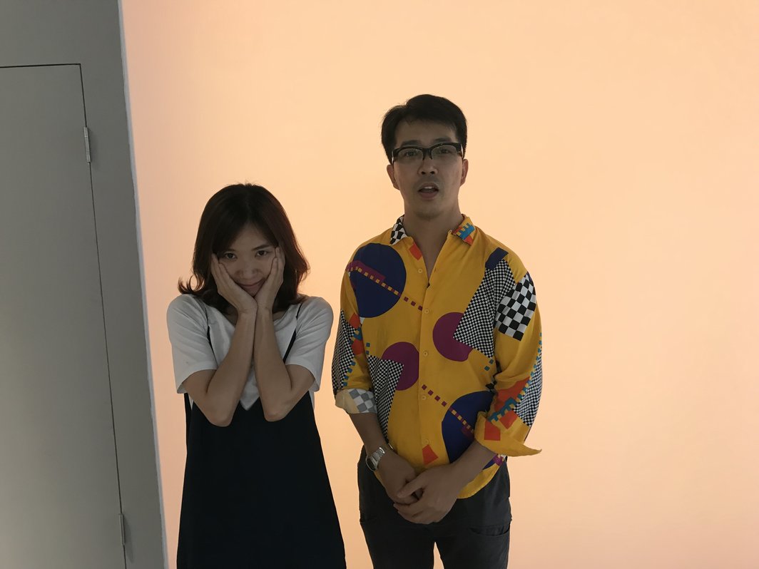 准备下楼的时候,我留意到了二层前厅墙上镶嵌的两只玻璃杯,这两只浅紫色的普通透明玻璃杯像一双眼睛,望向对面的楼宇。这面墙在改造前还不存在,这让艺术家徐喆有机会保留这两个洞。作品长达两百多字的标题(《无论天空是否蓝的让人乏味,窗下是否继续渗水……中略……无论石头几时开花,三零三的女人是否确定闭嘴裸睡……》如同展览本身——诗意风景有余,内在联系不足。