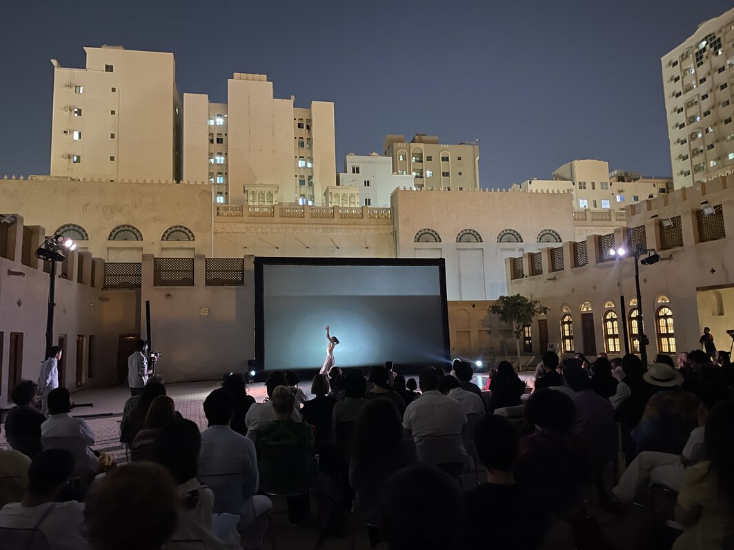 来三月会议的人有很多类:初次到访的个体从业者(比如我)总在努力搞清楚情况和交新朋友,每年或每两年来这里半工作半度假的资深或退休从业者更加自如地出入各种场合并呼朋唤友,还有团体出行的艺术学院老师带学生或者某个策展驻留计划/资助项目……如果完全按照基金会周密计划的三月会议日程,一整周从早到晚都有活动,包括跟着导览打卡五座城市近二十个场地中一百多个艺术家的三百件双年展作品,但没人有这个体力。除了每天两场会议,每晚还有艺术家演出或放映。有两天连续是来自非洲裔艺术家的行为表演,但台上汗流浃背努力说英语的黑人身体面对台下一众国际精英的凝视的场景让我有些尴尬。最后一天,主办方安排巴士参观沙迦市外的几个场馆,一路上孟加拉裔司机自豪地告诉每一位客人自己来这里23年了,见证了发展的奇迹。巴士载着各国观众穿越沙漠时的观光氛围让人感觉恰如其分,我内心感激主办方慷慨的安排。