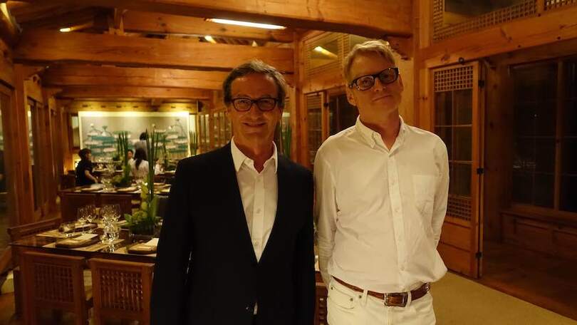 “记得我第一次来到这里时,我被人们家中的收藏惊到了,”Thaddaeus Ropac 在韩国家具博物馆(Korea Furniture Museum)里的晚餐上回忆道,这座山顶上的精致建筑范本的合集是藏家Chyung Mi-sook细心拼装的心血结晶。在花园里,我与Sarah Rustin和弗拉文·贾德(Flavin Judd)聊了起来,后者策划了他父亲唐纳德·贾德(Donald Judd)的展览,并在Ropac首尔展出,同时我也在细细观察在场的人,其中包括小汉斯(Hans Ulrich Obrist)、玛雅·霍夫曼(Maja Hoffmann)、诺曼·福斯特(Norman Foster)和埃琳娜·福斯特(Elena Foster),以及许多好看的本地年轻人。画廊总监何塞·卡斯塔纳尔(José Castañal)笑着说:“K-pop明星都喜欢Thaddaeus,”Ropac在祝酒辞中间接证实了这一观点,他提到BTS的RM当天早些时候曾来到展览现场,与大家分享了他对纽约MoMA贾德回顾展的喜爱之情。