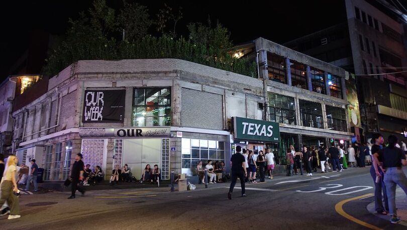 由P21、White Noise和CAVA LIFE联合举办的为期四天的活动 “Our Week”是梨泰院诸多派对的顶点。作为巴塞尔社交俱乐部(Basel Social Club)的韩国表亲,Our Week(以所在地之前的 Our Bakery命名)将卡洛斯/石川(Carlos/Ishikawa)、马凌画廊、Vacancy和White Noise带到了一栋仍在装修中的大楼里。PHD Group的 Ysabelle Cheung 一边欣赏着崭新的店面,一边耸耸肩说:“显然,他们上周才把窗户装好。“在这里周二上午的几个画廊合办的早午餐会上,气氛是潮人和鹰嘴豆,但在当晚的盛大开幕上,露台上本来是用来让人放空的地方变得热气蒸腾。字面意义的热气。“我没开玩笑,我觉得他们在煮一大锅泡菜汤什么的”,有人试图解释公共空间的热带温度和湿度。