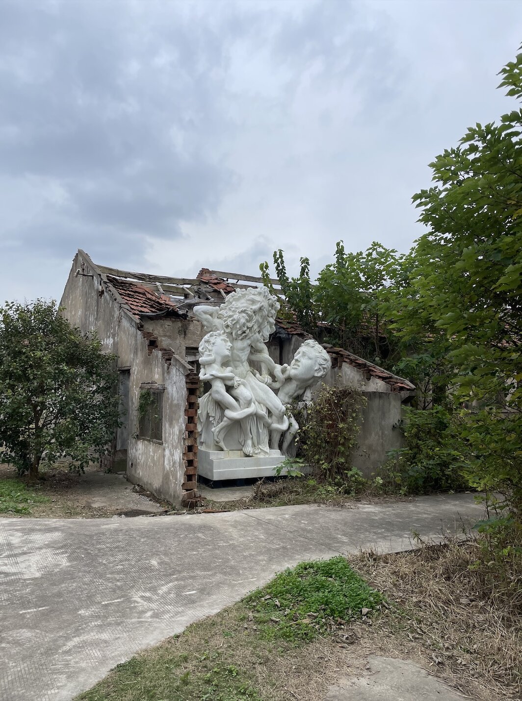 在上海的最后一天坐大巴去了崇明岛,看了由废弃鸡舍改建的没顶美术馆里正在展出的两场展览:廖国核的“金矿,雷鸣般的烟雾”和刘雨佳的“故事山脉”。前者营造的氛围被它新闻稿里引用的一句契诃夫完美地总结了:春天十分美好,然而没有钱,真是倒霉。在大部分艺术从业者努力把自己的最高收入穿在身上的艺博会期间把代表最低工资的数字挂到墙上,提醒人们市场经济侵入艺术如同资本主义侵入自然一样深。这很符合没顶美术馆的精神:徐震®的几件巨大雕塑被放在没了屋顶、杂草丛生的平房里,接受大自然的“改造”,也许是希望崇明岛的风雨可以冲刷掉一部分上海滩流出来的“罪恶”吧。这同时也让我想起同济大学教授陆兴华在由他担任哲学指导的展览“摸着收藏家过河”的展览小册子里力赞年轻收藏家周大为眼界高超时顺带夸奖徐震布展风格用到的比喻,大意是徐震摆放艺术品就像民工吃中饭时摆放一杯二锅头那样充满主权性(题外话:在iag艺术院线开幕的这场收藏展的确展出了不少值得一看的好作品,其很多布展细节也的确像民工摆放二锅头一样顺其自然)。徐震的这种“派头”还是建立在某种积极的乐观信念上,即相信可以在艺术市场内部扒拉出一片自留地,借系统之力捣腾自己的试验田。不过,正如“人民大众”在国内部分“左派”老师的论述里越来越失去所指,“市场”或者说在市场经济主宰下的社会生活在很多人的日常体验中也逐渐丧失魅力。