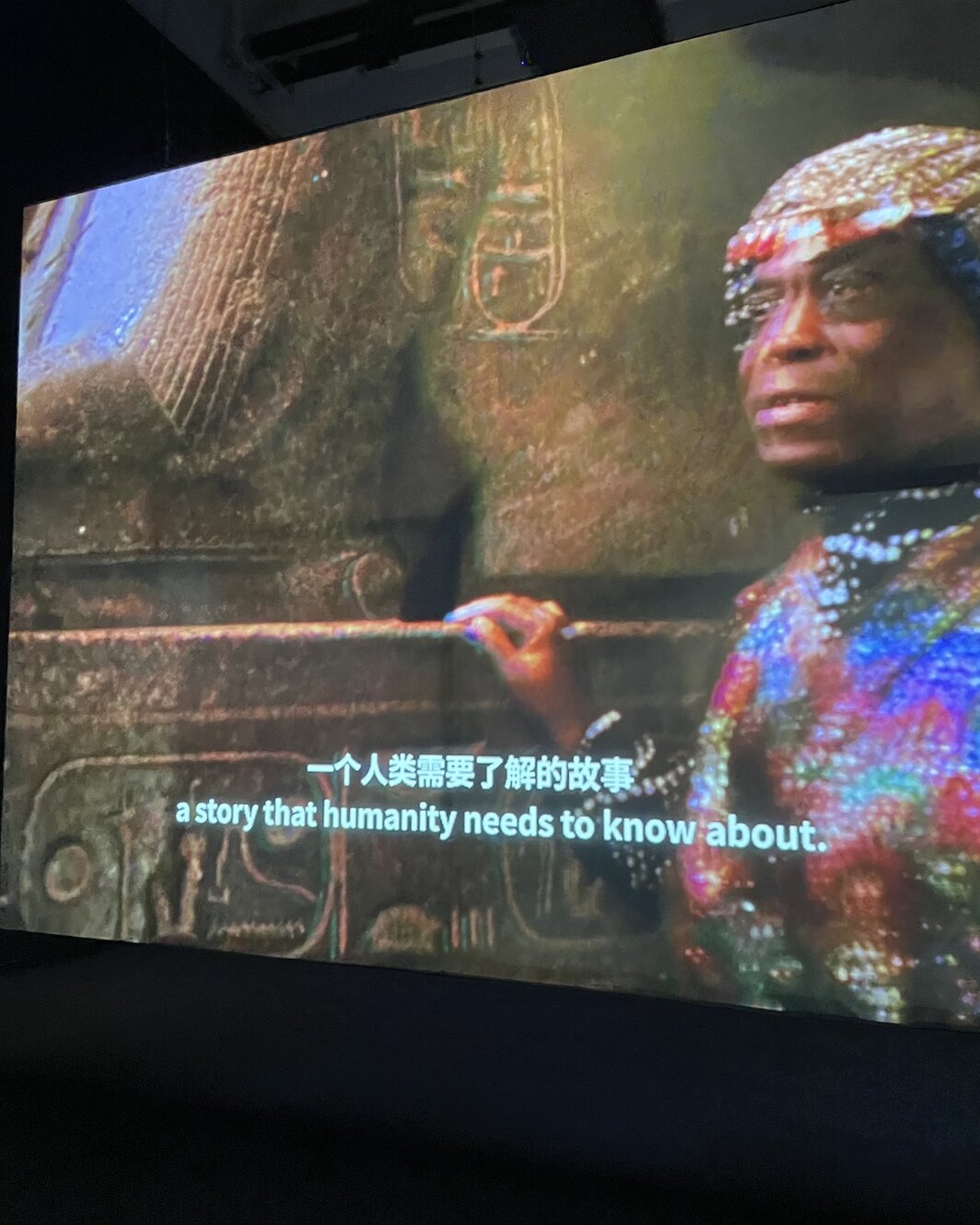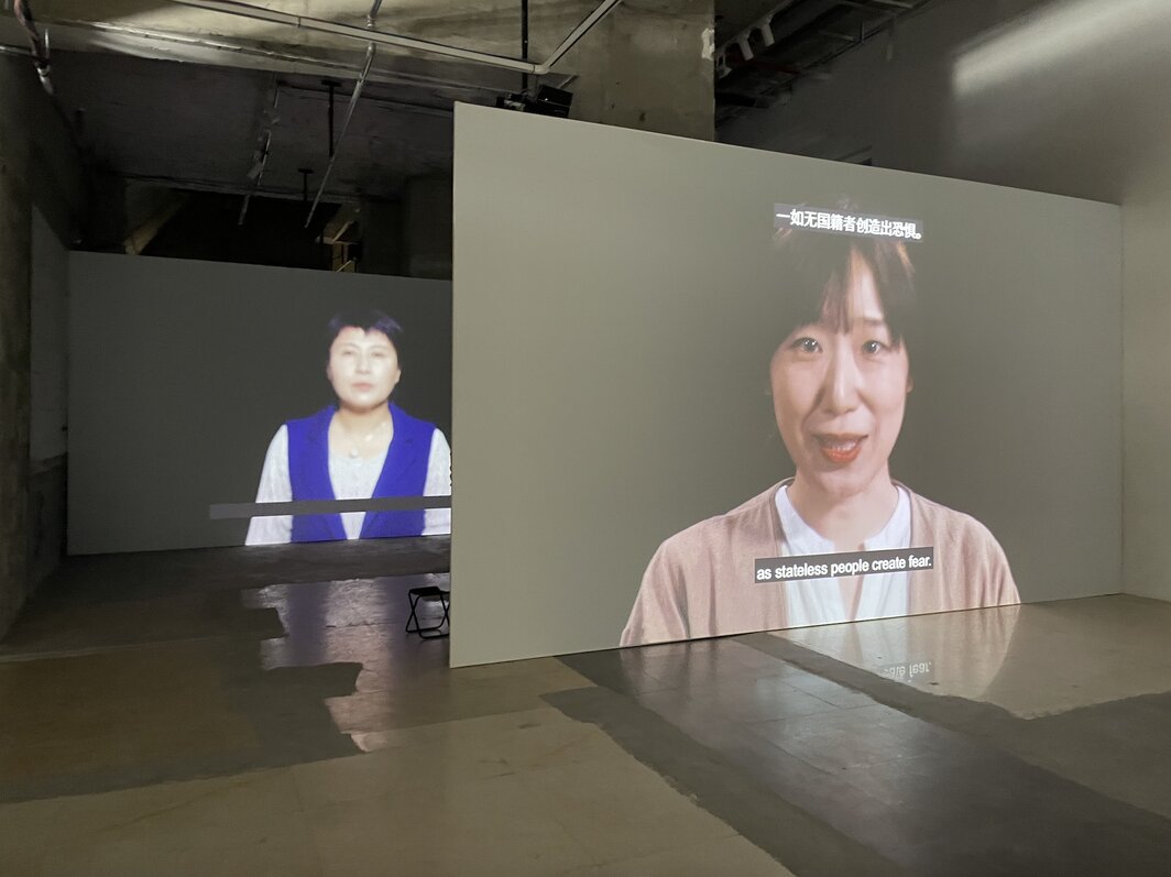 这种熟悉感在此处当然来自被讲述的故事里像通俗剧一样显白的桥段,但它同样可以来自艺术家构建和呈现故事的方式。在上海看展的几天,我不断在一些尝试在生态危机时代探寻新的宇宙观或物质论的影像作品中发现相似的叙述手法:对大量信息的整合与编排,壮观的航拍视角,高清画质与音质营造出的沉浸式观影效果,对配乐的频繁使用甚至滥用。仿佛气候变化带来的威胁越紧迫,改变现状的欲望越强烈,表达这种变革欲望的方法就越现成,现成的意思是,就近取材于我们浸淫其中并难以自拔的互联网和视觉文化环境。并不是说我对矿物质、动植物过敏,或者对生态政治或环境正义话题无感。同期在没顶画廊开幕的沈莘个展“一,至河漫滩”展出了艺术家2020年的五频道影像装置《盐湖(新身体)》,五段叙事在沿展厅动线排布的五个屏幕上相继展开,屏幕上,两名演员(一名讲韩语和日语,一名讲韩语和俄语)通过与看不见的对话者(由演员间歇性的沉默和被遮盖的字幕提示其存在)的交谈推动故事展开,在这个过程中,谈话的内容和故事的走向都变得有些扑朔迷离,最后你也搞不清楚这到底是一个关于碘元素的故事,还是一个关于采掘资本主义的故事,或者是关于国家的故事,又或者是关于(无国籍之)人的故事。但给我留下最深印象的,还是影片从头到尾的大特写镜头,两名演员所有细微的表情变化、言语的闪烁和停顿都被一一捕捉,人物作为人的存在被高度放大,仿佛在提醒我们,所有非人类中心的转向和对后人类世界的想象,针对的是人,最后能实现它们的也还是人。
