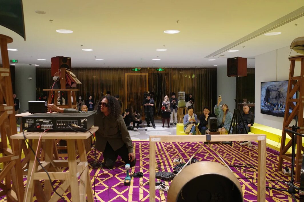 今年上海艺术周的亮点无疑是李爽在Prada荣宅的个展,这也是她的首次亚洲个展。精心装修的空间,配上李爽闪烁的吊灯装置和DJ Hyph11E创作的音效,让人仿佛置身于《闪灵》的标志性舞厅中,感受鬼魅般的优雅氛围,而开幕派对本身才是最怪异的:似乎,上海艺术周的黄金时期自2016年鼎盛时期以来就进入假死状态了。(在派对上,维持这场幽灵学实验的潜规则是,不要提起那些已经退出舞台的机构的名字——比如UCCA Edge等等。)虽未明言,但这场展览从声音上反映了对这座城市夜店文化的伤感情绪,对逝去的2010年代的深情致敬。在那个时期,李爽的音乐同行们为这座城市的夜店场景做出了不少贡献,赢得了国际声誉。这个黄金时代因疫情的严格封锁而戛然而止,现场的关键人物四散而去,仅留下一场一度充满活力的文化运动的回声。