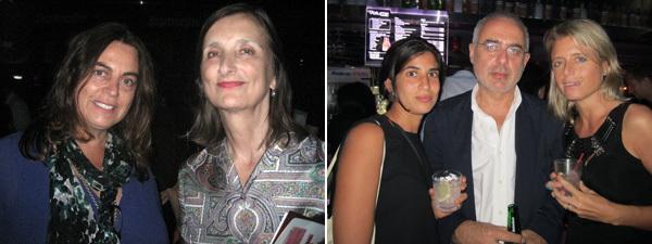 左:收藏家Maja Hoffmann(左)与策展人Bice Curiger;右: 作家(左)Roberta Lombardi, 策展人Francesco Bonami与 Gagosian画廊的Valentina Castellani