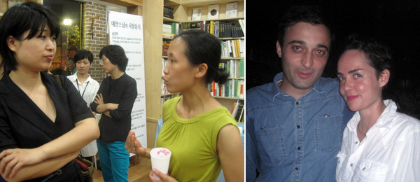 左:策划人Okwui Enwezor与Timezone8的老罗(Robert Bernell); 右:New Museum的Eungie Joo、艺术家Heungsoon Im、现代博物馆的Doryun Chong和Gwen Farrelly