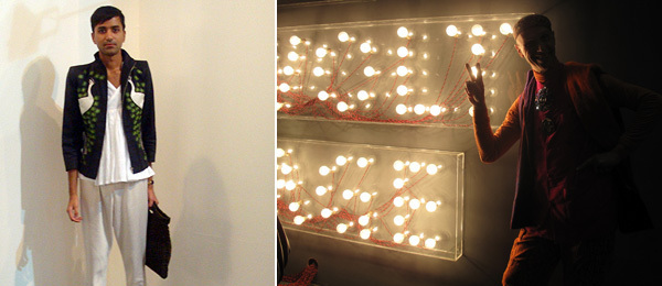 有些画廊决定不参加峰会,但是他们在城市中的出现还是给他们带来了利益。Talwar画廊就是一个例子。他们展出了唯一的作品:Ranjani Shettarde 的梦幻金黄和蓝色的三维艺术作品。在作品《泻湖》(Lagoon)中,天蓝和开心果绿色的珠子从天花板坠下来,好像深邃森林中垂吊的光亮果实。这个作品给人们提供了在展会的喧闹中一个喘息的机会。非营利的印度当代艺术基金会董事长Radhika Chopra称:“峰会的影响力很大,它的能量已经辐射到周边其他的活动中了。”在这些受峰会影响的活动中,最闪耀的要属斯柯达艺术奖2011(Škoda Art Prize 2011)。其在泰姬宫酒店(Taj Palace Hotel)的启动式可以说比峰会的开幕式还光彩夺目。沿着泰特英国透纳奖(Tate Britain’s Turner Prize)的路线,斯柯达奖颁发给德里的Mithu Sen。这样的结果让这位艺术家喜悦,却让一些批评家恼怒,他们认为应该让Kiran Subbaiah将该奖收入囊中。所幸,我们还能徘徊于Sen的视听展示之间,借香槟鸡尾酒消愁。Sen的视听展示精选了(但不局限于)裸男在白花旁边结合和排泄的画作。
