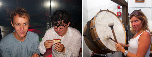 周二晚上,奥巴马夫人米歇尔准备发表电视讲话,瑞士学院举行了一个VIP晚宴,放映奥拉夫•布鲁宁(Olaf Breuning)的新影片(半小时长)《家3号:向纽约致敬》(Home 3: Homage to New York)。这是Métamatic调查计划的委托作品,丹麦收藏家雅各布斯(Allard和Natascha Jakobs)夫妇出于对让•丁格利(Jean Tinguely)的喜欢,成立了这个基金会。三个身着影片里蛙服的女人出来迎宾,影片渗透出有些低级的幽默,可能令参加活动的上流人士不适,不过还好,理解布鲁宁搞笑智慧的那些人还是会看得很开心,比如来自Metro Pictures的所有人。