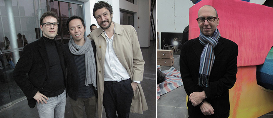 谈起真正的没顶工作室和民生美术馆现场的区别,张冰和马修夸赞这里比较干净和有序,可是也有人觉得恰恰相反。曾经和没顶公司合作过的邵希亚(Arthur Solway)认为,让观众到美术馆里来看艺术家制作艺术是一个妙不可言的想法,“也许是带着点娱乐的精神”,他也赞赏没顶再一次地做到了没顶式的无序:“在美术馆里展示乱七八糟”。可算作半个“桃浦艺术家”的何岸姗姗来迟,只匆匆留下一句话:“艺术生产等于政治生产,这种生产永远在路上,徐震的东西很粗糙,但是他把粗糙变成了一种力量,这种力量和他的性格在一块儿,往前推进,很好。”