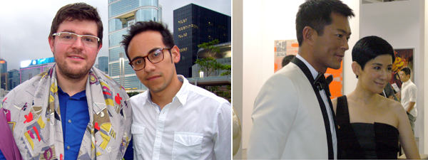 所以开幕式并没那么张扬,尽管有电影明星亮相,比如古天乐,吴君如,还有香港特区前政务司司长唐英年及夫人郭妤浅。看了一整天的艺术,很多人在奔赴各种晚宴前(其中就有乔治•杰生和迪奥为Artsy组织的活动),都跑到新的VIP区里歇息。天气虽然没有耽误博览会的开幕,但是现代传播和K11的余兴派对却不得不从君悦露天泳池边转到了室内。10点钟,这个小地方已经人满为患,主人Adrian Cheng和邵忠都难以在客人中间周旋。