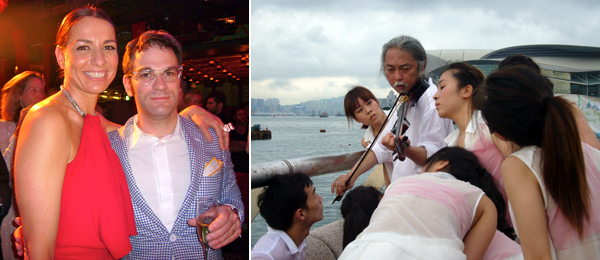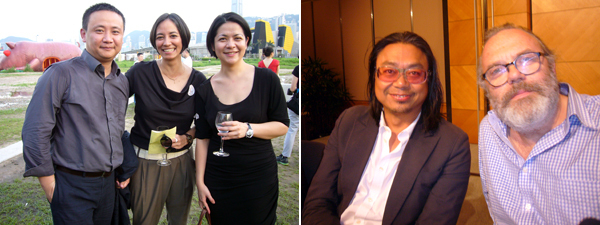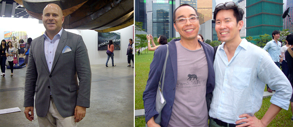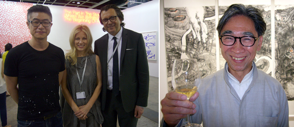 在干诺道中50号,人群有增无减,在一堆蜂拥而至的人群中,白立方创办人杰•贾普林(Jay Jopling)接待了查普曼兄弟和凯特•莫斯。再往楼上,艾曼纽•贝浩登(Emmaneul Perrotin)展示的是村上隆和夏维尔•威尔汉(Xavier Veilhan)。在一个有村上隆设计的地毯和花艺师东信(Azuma Makoto)设计的花艺的房间里,贝浩登举办了一个随意的晚宴,也许有些随意过头,不断有人闯进来,连客人都很难找到位置。