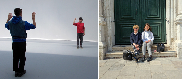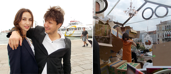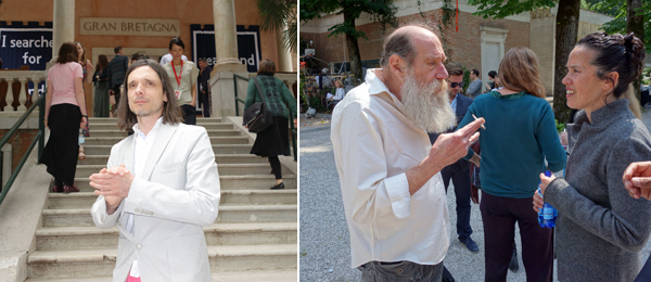 在中央馆前面的人群中看见画商亚历山大•赫特林(Alexander Hertling)和艺术家尼尔•贝鲁法(Neil Beloufa),我还是小吃一惊的。听到一些不靠谱的天气传闻后,我们当中的一些人穿着简陋的记者服(以应对天气之变)出门了,这样的穿着跟一些精心打扮的画商格格不入。“我以为今天只是给媒体开放呢?”“不,还有艺术家,” 赫特林纠正道,马里奥•泰斯提诺(Mario Testino)坐船经过,在入口处亲了一个收藏家的双颊。