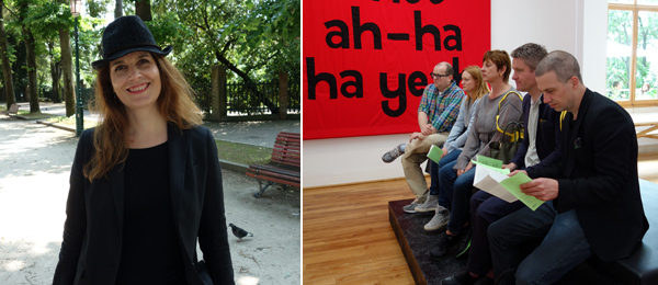 展览题目组成了桥对面罗马尼亚馆,在那里艺术家亚历山大•皮里西(Alexandra Pirici)和 曼努尔•佩尔姆斯(Manuel Pelmus)运用了提诺•赛格尔(Tino Sehgal)尝试过的手法,推出了《威尼斯双年展不朽的回顾展》,以舞蹈式表演和看来很偶然的观众成员,重新讲述了展览史的那些重要的时刻。我进去后看碰到了大卫•莱莫拉斯(David Lamelas)的《信息办公室》。叙述者告诉人们:“这有一张桌子”,一个表演者双手放在膝盖上跪下来。叙述者继续说。“一扇窗,”第二个人伸展开铺平,弄得很像窗户。隔壁,人们重新回想起他们等待博览馆康拉德•斯莫伦斯基(Konrad Smoleński)的钟声响起来的精彩时刻。