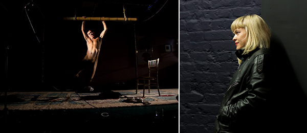 由于一些参加表演的艺术家通常并非以剧场作为创作媒介,因此他们也将舞台拓展出了别样的可能性。当西丽亚·汉普顿(Celia Hempton)身着男士黑色皮革摩托服走到观众前方时,我们便一眼可认出了她所贴合的魏玛时代女性施虐者形象,但当她打开房间内冷素的荧光灯并显露出服装的宽松和不合身时,汉普顿则转变作和之前假设截然不同的令人愉悦的形象。她粗鲁地在舞台上走动,并带着毫无畏惧的表情数次击打一个男人(马克·斯库里Marco Scuri)的肚子。在一整晚对性的再现的戏仿中,极少的停歇说明颠覆并非总是一本正经的诱人。