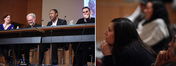 虽然场上的对话似乎不温不火,而那些盯着各式“苹果”产品的人却全神贯注地发微博,在讨论以缓慢速度展开的同时,微博上的讨论开始热烈起来了,可见,两位艺术家们不仅仅是在