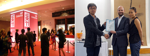 赶到工体时天已擦黑,粉红色的酒店就藏在京城老牌HIP-POP夜店MIX背后。开幕由瑞居和当代唐人艺术中心合作。唐人负责邀请了目前国内四位活跃的策展人,共推荐近70位中外艺术家参与项目。唐人总监郑林今天显然心情很靓丽,据他介绍,策展人分工如下:“郭晓彦负责重量级、有影响力的艺术家;卢迎华负责偏学术、偏实验性的艺术家;李振华负责多媒体、影像方面的艺术家;鲍栋负责年轻一代活跃的艺术家”。