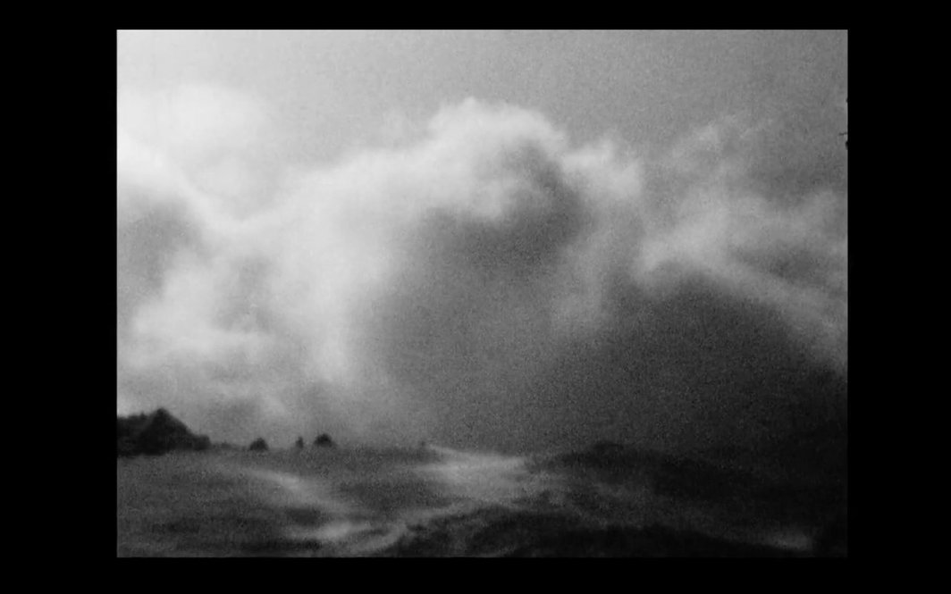 云的魅力,之于考特,一方面是因为它和水一样,流动的质地为电影机器提供了一个表演智慧的舞台,影像变速后的韵律满足了他对造型张力的追求,而这一张力并非制造景观的工具,它是观者与电影世界之间一个“非语言性”的界面,两者在这里的相遇摆脱了语言中必然的简化和多余的理性,于是得以抵抗我们对影像进行诠释和总结的陋习。如果我们跟随德勒兹的思路,将此种“冲动”与“偏好”与电影作为一种“液态机制”(mécanique des fluides)的基础智慧相联系,百年之后,作者与观者仍会为之痴迷动容,似乎也就不足为奇。云的诱惑,另一方面,大概来自于它无穷的动能和毫无拘束的形变,于是考特在与云的对话中得以解放他的直觉和想象。《云在大地裂痕处》的灵感来源于电影《Los Tarantos》(1963)中一段精彩绝伦的弗拉门哥舞蹈。从舞者脚下飞起的尘土到山顶翻滚的云团,从一部传统剧情片到一部貌似完全不相干的实验短片,对考特而言,电影是体验与情感凝结的晶体,同样的情绪他不会用常规的影像编码来表达,而“抽象”只不过是一个可见的结果,用来传递和邀请那种情绪罢了。