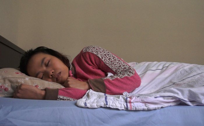 孙:那就以子题依序来谈好了:「肖像|家庭」在纪录片是非常常见的题材。当代艺术界的曾御钦就常处理小孩子,在《是不能美的》里,小孩子不是很活泼快乐的样子,而是眼睛闭起来或睡觉时的样子,曾御钦想象小孩子,而这样的小孩呼应了他二十几岁时的情感世界,在这里肖像变成一种代表过去的时间状态。八〇年代出生的许家维毕业于台艺大,《和平岛故事》拍摄讲日文的阿嬷,谈日军、国民党等,但在许家维的作品里没有人的出现,运用空镜头或者「空」的概念来讲述历史与记忆。陈正才《天使的肖像》就是装置作品,片长半小时,拍摄一个坐着的喜憨儿,用极端的慢动作来捕捉人物的细节,现场投映的画面就和真人一样大,最初展览的方式是以叁个银幕,但这次双年展只会以一个银幕来呈现,影展期间作品会放置在展场里,不做黑盒子的放映。高重黎《我的陈老师》拍邻居陈映真、《人肉的滋味》拍摄的是父亲,事实上高重黎的作品因为机械的问题,都很难再现,最早在耿画廊展出时,《人肉的滋味》是使用旧式幻灯片播放,搭配旧式录音机,是个以老旧机器混合出陈旧感的作品,但这次展出只能以影片的方式播放。