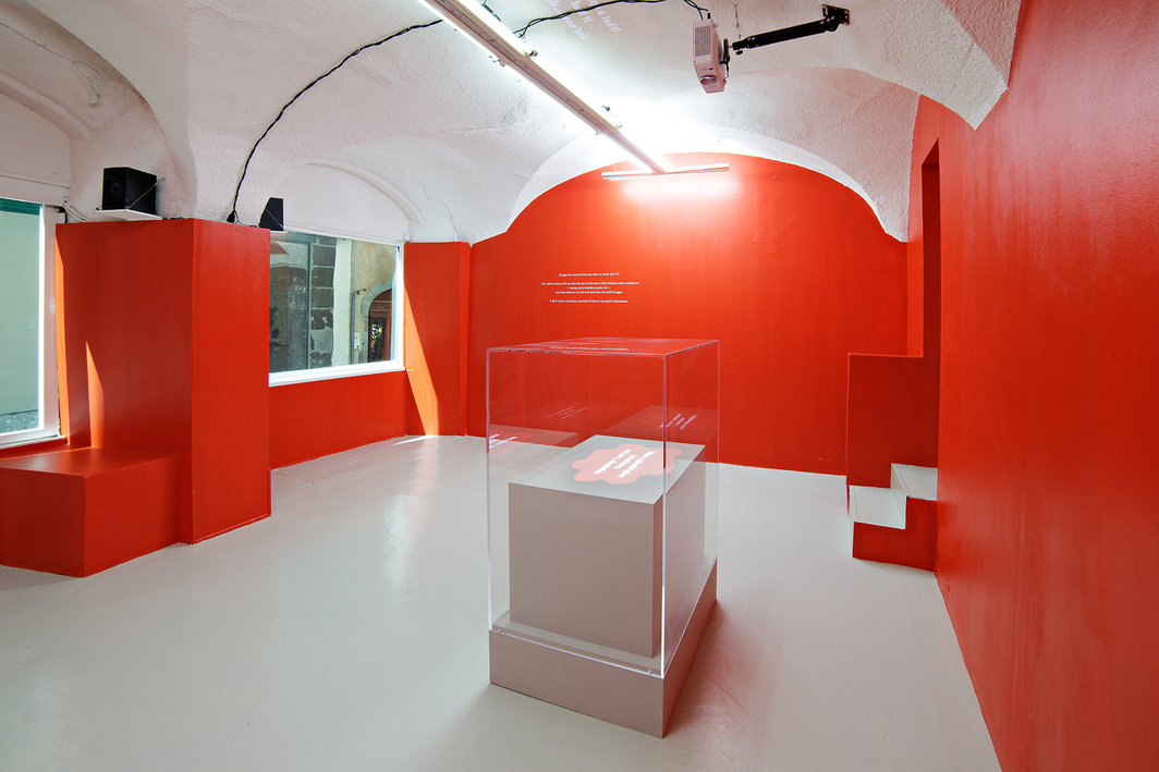 展览的契机源于马克龙邀请两位历史学者就法国博物馆机构的雕塑归还问题撰写的《非洲文化遗产归还报告》(Rapport sur la restitution du patrimoine culturel africain),而其中的一位学者曾在(目前正在修建的)德国洪堡论坛(Forum Humboldt)进行博物馆筹备工作,因对展陈方法不满发出声明并退出团队。在此次展览的研究之初,我主要专注于非洲和中国物品的交换——本次展览地下展厅的作品《雕塑品》(The Sculpture,2018)亦涉及相关问题。后来听说法国枫丹白露宫中国馆藏的藏品,同时考虑到将位于克莱蒙费朗的这次展览置于更大的法国框架下,我开始做该研究。展览中的声音装置《观点》(The Perspective,2019)以声音剧场的形式讲述了三个故事,从第二次鸦片战争开始,至2015年枫丹白露宫中国馆被盗为止,横跨150年的时间;这些物件也在不停地被盗的过程中产生了新的时代意义。当时也曾考虑是否呈现研究图像,但策展人Pietro Della Giustina和我一起决定采用雕塑被偷走的展示方式——即没有雕塑品。这让展览变得更空,也避免了再次产生争议图像所可能衍生出的问题;同时又更为激进,挑战参观者的想象。