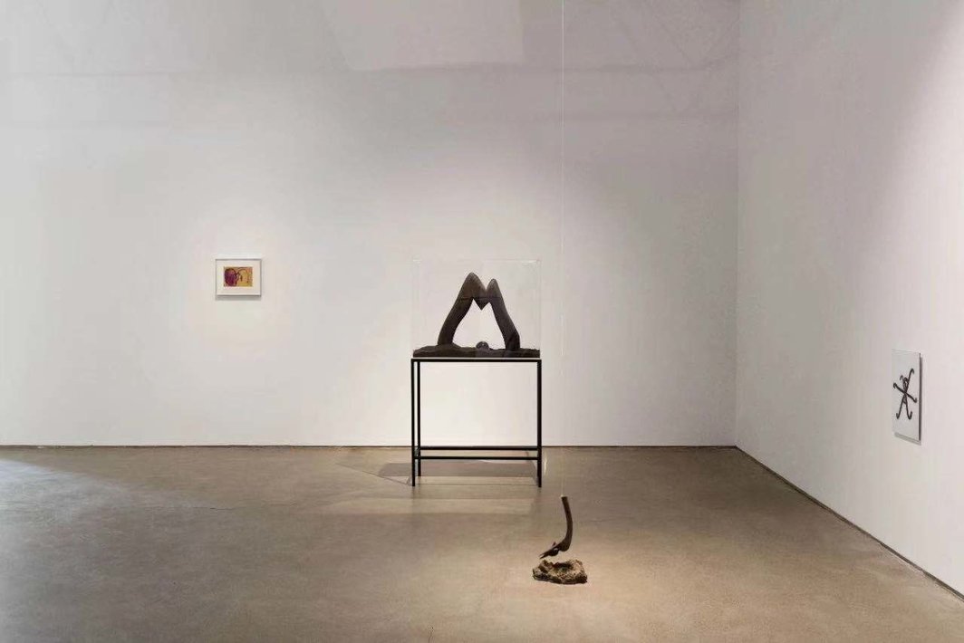 此外,这次展出的“忧郁”系列算是从之前的线索中延续下来的部分。这个系列最早从2017年开始,灵感源于丢勒的版画《忧郁Ⅰ》。丢勒画中天使身边散落着各样的物件,与我当时的创作方式相似,即:对既有图像进行分解和拼接。在2017年的个展“忧郁”中,我用牛角做了一把巨型“梳子”。而此次展览展出的作品《忧郁之一》在沿用17年的木雕作品基础上,增添了水晶球和玻璃展柜等元素。这样做不仅仅是考虑水晶球的光学效果,更希望由它暗示虚空的时间。另一件作品《象形》画面中的铁钩运用了楚文化中的礼器形象,同时它也指代了美杜莎的蛇形头。我将原本的女性形象解构成异形生物,希望通过挪用再创作,将形象符号从固定的语境或功能解放,从而取消文明之间教条般的差异和规则。我将展览视作我阶段性的个人印记和物质材料叠加呈现的视觉日志,并将作品的物质概念彼此覆盖并重新编排成新的文化代码。期间,观众对展览的感知在打破固有理解上对我具有同等重要的意义。