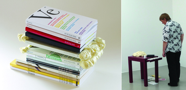 第五期里,我把每一本书的边缘处都喷上了泡沫喷雾,所以这些书很难打开。它令人想起了海面的泡沫,但如果你要把它除掉的话,就会有些小麻烦。一旦你真把它从边上出去的话,书页就会脱落下来,这简直就像在除掉一个太阳灼伤的印儿。而这个过程其实是和杂志的内容相关的,对我来说,是去感受海岸线,感受潮来与潮往。例如Adrian Piper的文章,谈论的都是瑜伽和哲学里的这些旋律,节奏,重复。