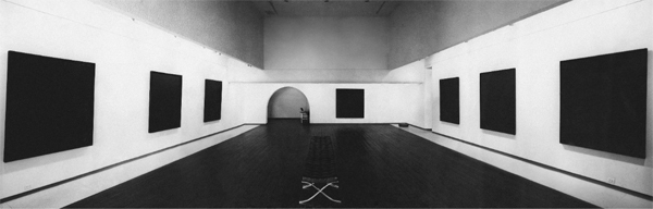 当我们有展览开幕时,伦哈特总会从纽约过来。在我给第二家画廊选址时(在洛杉矶的Westwood地区),我脑海中想起了他。我想保证天花板足够高,适合放他的画,因为当时他的画也很大很高。地板附近片区域是白色大理石做成的,就在挂画的区域前边,这样就和观众保持了一定的距离,使得人们无法触摸到画。但后来他却给出了“终极”绘画,有六十平方英寸。1963年11月22日,在画展开幕前两天,肯尼迪(John F. Kennedy)遇刺,我们决定不做开幕派对。后来人们过来看展,说:“天呢,多好的品味,就展出黑的!”