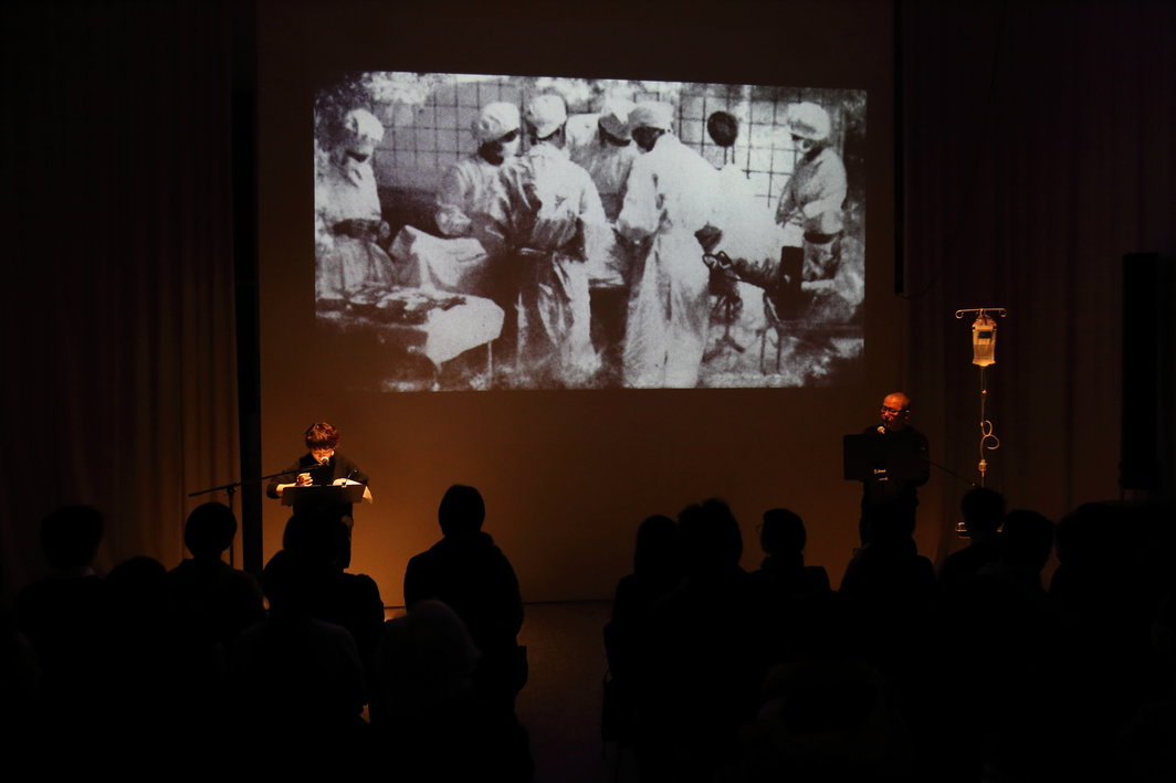 陈界仁,演讲表演现场,2016年2月,Shibaura House,东京. 图片提供:东京艺术公社,摄影:Masahiro Hasunuma.