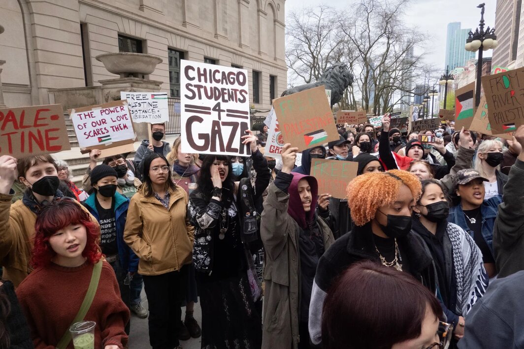 10月24日,芝加哥艺术学院(School of the Art Institute of Chicago,SAIC)的学生和教职工举行游行,抗议以色列对加沙发动的战争,以及“芝加哥艺术学院在对巴勒斯坦人的种族灭绝中的同谋行为”,该行动由“学生支持巴勒斯坦解放”小组(Students for Palestinian Liberation,SPL)组织。据Artnews报道,约有两百人参加了此次行动,他们在学校的麦克林中心(Maclean Center)前集合,沿着密歇根大道前往公园,很多参与者手举标语牌,上面写着“以色列一轰炸,SAIC就获利”。