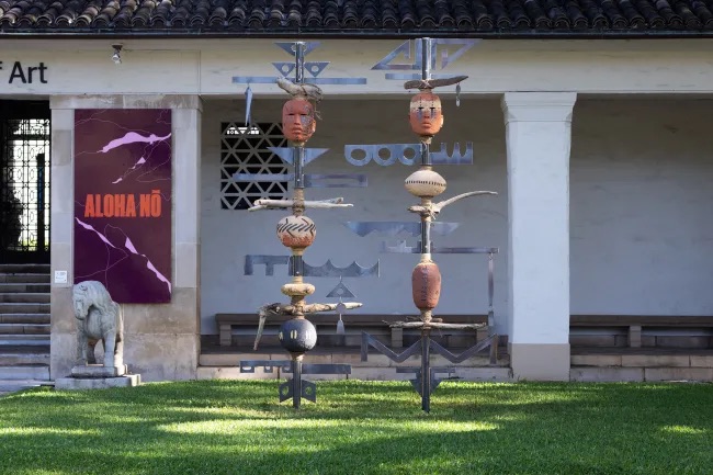 展览几乎全部集中在瓦胡岛(Oahu)及檀香山市中心一带,共涵盖了十四个展览场馆,展出了四十九位艺术家的作品,其中大多数来自环太平洋地区,并以原住民背景为主。夏威夷本就是一片极其复杂且丰富的土地:州旗上印着英联邦米字旗,美军战斗机和运输机在无人海滩上空轰鸣掠过,而在都乐菠萝园大啖菠萝的游客们似乎全然不知,这种水果正是十九世纪帝国主义-跨国企业-殖民扩张最赤裸的象征。至少可以说,夏威夷的历史是一个极为复杂的动态过程,而策展人瓦桑·阿尔-胡杜海里(Wassan Al-Khudhairi)、崔彬娜(Binna Choi)和诺埃尔·M·K·Y·卡哈努(Noelle M. K. Y. Kahanu)以令人欣慰的轻盈手法应对,大部分情况下都避开了说教姿态,转而关注和解与修复。整个三年展似乎都在主张以一种细致入微的方式对待“他者”,强调去殖民化并非通过宏大宣言或表演式的行动主义来实现,而是通过细小但持续的行动、人与人之间真诚的关怀、对文化的守护与对自然世界的尊崇,一点一滴地积累和达成。
