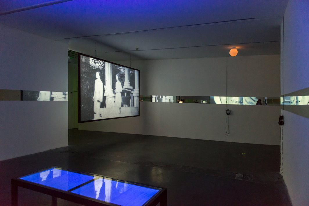 你穿过巴金长篇小说《寒夜》的开场文字,走进艺术家娜布其刻意降低的天花板和一些室内场景,算是走进了一个小说的氛围。真要说起来,展览和小说没有那么相近。四位艺术家演绎这则家庭矛盾的方式,更像是精神分析式的一系列浓缩和移置。娜布其用镜子将展厅围了一圈,含蓄地只在悬吊灯箱的支架上透露出一点她的雕塑中特有的纤细伸展的造型。巴金小说中扮演了“大他者”角色的奉光,到李然这里变为一系列排演素材铺张的堆砌;它们几乎架空了正本,延续李然一直以来对叙事性的解构。刘诗园将影片场景设在丹麦,借喻小说中的兰州;而战时的陪都重庆则被陈轴替换为赛博空间。他在《蓝洞》中为小说角色搭建的冷光野山洞是人工自然的绝佳符码。影片中大量的心理描写,恰好最贴近《寒夜》的笔法。剧中年轻女孩的内心戏所统治的世界是社交媒体的投射,陈轴也活在里面。实际上,年轻女孩的身份并不必然意味着生理上是女性。她们的服饰是一串串彩珠——陈轴专属的迷幻药。连同先前的影像散文《模仿生活》来看,也许陈轴本人更像是法国激进团体Tiqqun所刻画出的“年轻女孩”的后微信版本。