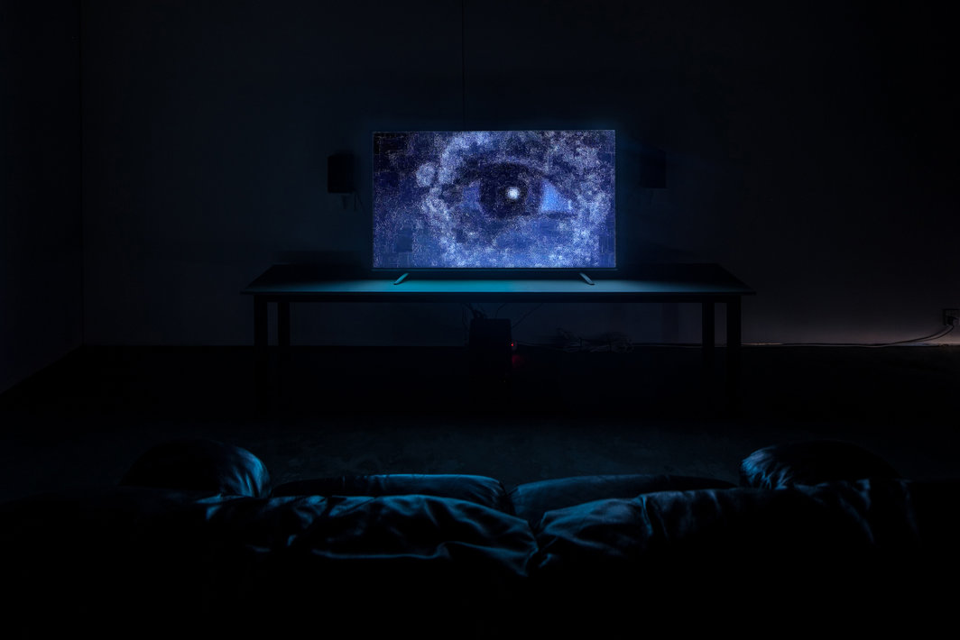 在耳石小组2011年的录像作品《诅咒》中,液晶这一广泛应用于触屏的媒材经过干扰处理,呈现出貌似早期录像的低清颗粒化图像,细看却能看出媒材自身的物质纹理和传播特性。出现在视频前半段的触屏电子设备广告由此焕发出与日常高清屏幕截然不同的诡异之美,我们习惯于技术图像和媒介交互训练的感官逐渐沦陷于这种图像的魅力。《诅咒》对视觉素材的处理或许可以类比为某种疫苗制作手法——不是对病毒的灭活,而是弱化其毒性,在反复魅化和去魅的过程中,图像、液晶的流向和手指的触摸不断引发并驱散我们参与这一闭合回路的欲望。至于能否产生持久抗体,或许还要看观者自身。