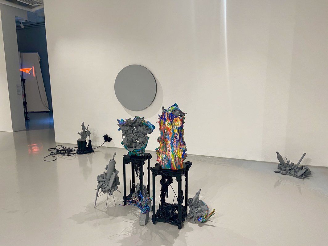 由于这样的创作模式,本展览不可避免地带有一些工作室“毕业展”的意味,尽管四位艺术家在各自领域已有不同程度的积累。然而,在疫情不断反复的香港,本次展览不失为一个积极的尝试。其特别之处不仅在于参展艺术家的协同工作方式,还在于呈现了一个新型艺术生产系统。本次展览的主办方HART,旗下有HART Hall,HART Haus和HART17三个实体项目空间。其中HART Haus为艺术家共享工作室,提出申请并通过筛选的艺术家可以以低于市场价的租金使用其位于坚尼地城的厂房式空间,本展览四位艺术家均获选在此工作;HART Hall为本展览的展示空间,位于最近国际大画廊纷纷进驻的中环H Queen’s大厦,而HART与H Queen’s大厦同属香港四大地产巨头之一恒基兆业集团。可以说,本展览从内容生产到展示都是在“一条龙”系统内完成的。HART给参展艺术家提供了相当多的资源支持,除了宽敞的工作室和黄金地段的展示空间,还为每个艺术家举办讲座,制作个人宣传片。此次展览或许标志着HART开始为香港艺术界提供一种新的艺术制作模式。该模式会为本地生态带来什么影响和改变,我们拭目以待。
