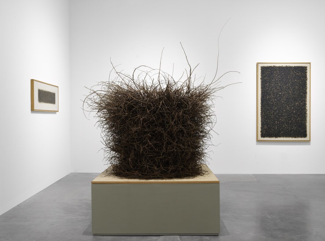 申凡在香格纳画廊和艺博画廊同期开幕的两场个展分别从抽象和具象两种不同的造型机制出发,整体呈现了这位“海派抽象艺术”代表人物的创作实验:一方面,艺术家的抽象处处依附在对于物质特性与现实经验的比拟上,另一方面,在处理具象(尤其是语言文字)时又往往超越其表层含义而指向背后的抽象结构。