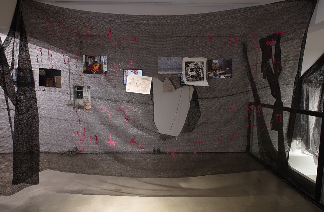 在岛外空间举办的“我们来自西三”是西三歌队的首次个展。“西三”在此具有多重指向:既是小组的名称,也是一个具体的地理位置——广州市番禺区西三村,同时更是一种立场,代表着来自城市边缘的声音。走进展厅一楼,扑面而来的是一种粗粝的现实感,空气里混杂着城中村小作坊特有的尘味。巨大的黑色遮阳网悬挂在展厅上空,这种廉价且实用的材料遍布西三村,乃至无数南方城中村,遮蔽着亚热带猛烈的阳光,也隐喻着某种被主流视线所过滤、长期处于阴影中的生存状态。