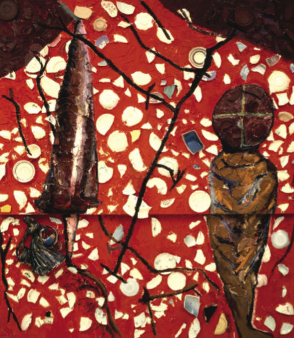 现在听起来可能有些奇怪,但在七十年代中期到末期的艺术圈里,主观性,甚至感性这样的词都带有浪漫主义色彩,因此一点儿都不酷。艺术作品就是要努力接近可验证的命题,而艺术家则像是哲学大厦视觉艺术部门的工人,尽量不在作品中留下任何个人痕迹。整个七十年代,艺术家如果坚持自身主观性第一的话,就会被人视为异端,还有可能被冠以“刚愎自用”的臭名,谁希望顶这么个名号呢?当朱利安和其他同龄艺术家于七十年代末浮出水面时,艺术圈所有人都在讥笑坐着破烂的“观念”小舟飘洋过海的一代人,笑他们的虔诚和贫血。1978年,他拿锤子打碎了一箱瓷器,为自己的绘画打底。相信我,那声巨响的回声可不小,至少在西百老汇大道上如此。他早期的盘子画跳出了当时的常规框架,代表了勇气和自由,并表明他愿意把所有东西押到一个当下作出的决定上。这些作品和后来的歌舞伎幕布画都只以朱利安的个人感觉为基础——这一点就已经构成一种叛逆行为。同时,它们也表达了某种内容。不管是主题,还是风格,这些作品都呈现了受苦和救赎的形象;它们赞美神圣的愚人,刻画人类脆弱的同时也表现了艺术的成功。它们包含了一种天然的易损质地,甚至可以说是温柔,但这些气质有时可能被作品的气势和规模所掩盖。