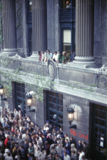 一天,我离开学校去东区看一位朋友的展览。准备穿过百老汇大街时,我惊奇地发现人们的生活一切照常。学生们错了。这不是革命。根本就没有革命。这一点在4月27日(星期六)得到了确认。按计划那天中央公园本来应该有一场大型的反战游行,当然了,大家觉得游行队伍最后肯定会开到哥伦比亚大学去跟抗议学生汇合。但和星期五的哈林区一样,当天什么事也没发生。大家的确对事态发展非常关注,也有不少外来人员加入哥大的抗议活动。但运动大部分仍局限于校内,并越来越不像学生相信并希望发生的那场“革命”了。后来有人说警察随时都可能进入学校,我心想这些谣言我真是听够了。所以最后“大清场”时我不在。但整个过程中,最后被警察带走送进下城区法院的大约七百多名学生及其支持者里,很多人都变得彻底激进了。第二天清晨,走在校园里,我有一种很不好的感觉,就像祖国被侵犯了一样。到处都是警察和斗争的残骸。校长因召集警察清场在所有人心中威望尽失,所以也没有主持当年的毕业典礼。我记得这是头一次哥大毕业典礼演讲的发言人不是校长。而且典礼仪式也没有像以往一样在校园里举行,而是移到了附近的圣约翰大教堂。很多毕业生都中途退出去参加了校园里的另一场“反毕业典礼”。没多久,柯克校长辞职。