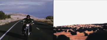 Amy Granat和Drew Heitzler在2008年惠特尼双年展上的参展作品,是两人于2007年完成的一部以歌德的书信体小说《少年维特的烦恼》(The Sorrows of Young Werther)命名的双屏电影T.S.O.Y.W.。片中,一个摩托车手从Robert Smithson在大盐湖畔建造的“螺旋形防波堤”(Spiral Jetty)出发,最后来到莫哈韦沙漠。但整个过程主要的动感来自两个屏幕间的来回切换:有时屏幕上的图像只有些轻微的晃动,仿佛是Granat和Heitzler肩并肩站着拍摄的;有时两边图像又完全不同。这种横向张力贯穿并阻碍了旅行的线性叙事,不时闪现的抽象图案和低沉单调的背景音也同样令人不安。这是一部漫长又摄人心魄的电影,某些时候好像摩托车手原地不动,而荒芜的陆地从他身后飞驰而去。最后你会感觉这根本就不是美国西部,而是一个地图上找不到的中间地带,一个停滞悬空的地方。