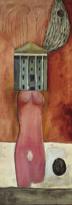 路易丝·布尔乔亚在纽约所罗门R.古根海姆的回顾展,规模巨大,现场展出150件作品,其中100件是大型雕塑,去年,这场展览伦敦的泰德当代拉开帷幕。展览以1940年中的 “女人屋“(Woman House)系列开始,虽然这些作品并不多,但是却令人想起了布尔乔亚在艺术史上神话般的威望。这些古怪的画作以女人的身体为背景,描绘了不同样式的房子:山形墙板,隔离板,复折屋顶谷仓,公寓楼, 其外观不禁令人想起了1938年巴黎的国际超现实主义展上,艺术家的朋友们往橱窗模特上放置的鸟笼帽。布尔乔亚作品中的躯体和 “随机接龙”(Exquisite Corpse)游戏中突兀的不连贯性之间的联系,恰恰体现了她在超现实主义方面的成就,尽管她经常对这种不可避免的联系持轻蔑态度。