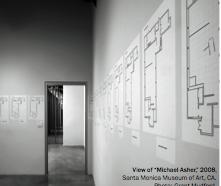 通常来说,回顾展就是一场普通的恭维艺术家的偶像化传记展。但它常常也具有颂词般的功能。Asher自身对于回顾展的反应却并不平常,他依然对构成艺术作品和其条件的已有方式进行质疑。他并没从过去的作品中挑选一些出来进行展示,而是将博物馆1998年移到现址后所举行的44场展览的每面墙集合在一起,含有一件全新的建筑和雕塑的空间互相重叠。以往展览所留下来的遗痕,也没有什么具体内容,但是却继续倾诉着Asher对艺术作品以及与混乱环境相关的语境所进行的苛刻的评析,审视着一场展览结束另一场旋即登场的暂时性场景。