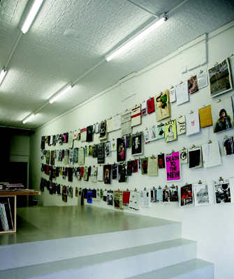 然而,只要说到下东区近年的历史,就不得不提到Orchard。Orchard是一个合作经营的展览空间,按三年前创建之初的计划于今年五月如期关闭。2005年,十二名跨越各个年龄层的艺术家,电影制片人,策展人,艺术史学家和评论家组成的一个松散团体发起并创建了Orchard。接下来的三年中,Orchard逐渐成为一个艺术空间群体的中心,这些空间有着相同的地理位置,都坐落于地兰西街(Delancey Street)以南,亚伦街(Allen Street)以东,但更明显的分组特征是它们的小规模,话语导向和政治见解。(作为原则,其中很多家也是商业画廊。)实际上,和附近的Reena Spaulings Fine Art一样,Orchard的坐镇为该地区的艺术圈催生并维持了一种亲密的国际化氛围,比如,去年二月,Ludlow 38在几个街区以外(即时出版团队Dexter Sinister地下酒吧楼上)开幕。这是歌德学院纽约分院在市中心的一个附属组织,与慕尼黑艺术协会(Kunstverein Munich)联合经营。空间的首场展览叫《出版和挨骂》(Publish and Be Damned),把从《美国制造》(Made in USA)到《美学&抗议》(Journal of Aesthetics & Protest)的各种业余杂志和小型月刊用纸夹挂在墙上供参观者任意翻阅。从那以后,Ludlow 38就经常举办讲座和放映会,展览作品中包括一盘1992年录制的著名VHS录像带。这盘录像带由科隆杂志《Spex》发行,收录了很多六十年代出道,如今已功成名就的艺术家早年创作的短片,其中包括Josef Strau,Stephan Dillemuth,Wolfgang Tillmans以及Angela Bulloch。该片的展映让人们切身感受到这些早期活动与如今下东区如火如荼的国际交流之间存在的持续性。今年秋天,去Reena Spaulings看Stephan Dillemuth和Nils Norman展览的人可能前脚刚出来,后脚就在Ludlow 38发现Dillemuth,Norman和Strau 十五年前的录像作品。